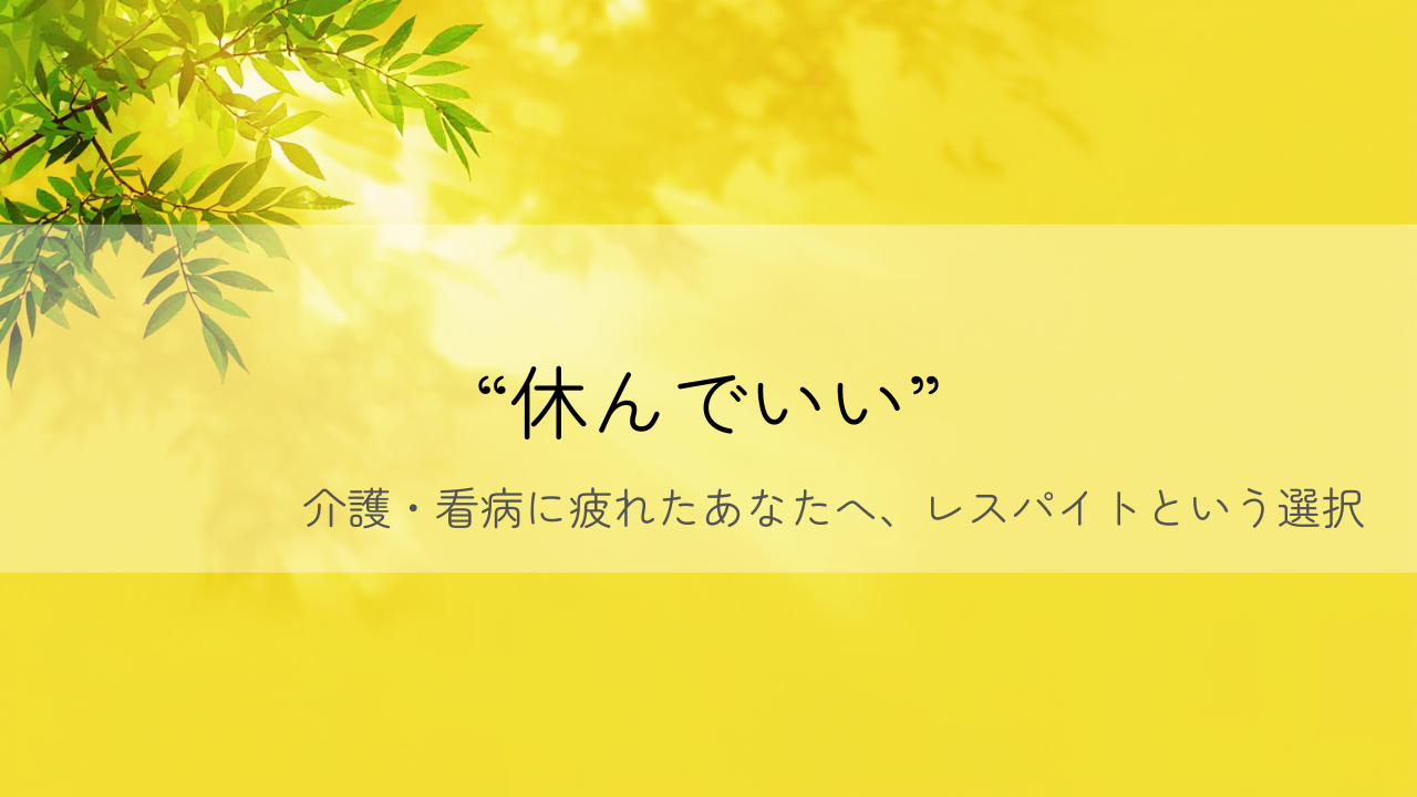 レスパイトは、あなたが壊れずに続けるための“仕組み”。 どうか、「私が休んでいいのかな」と悩む前に、