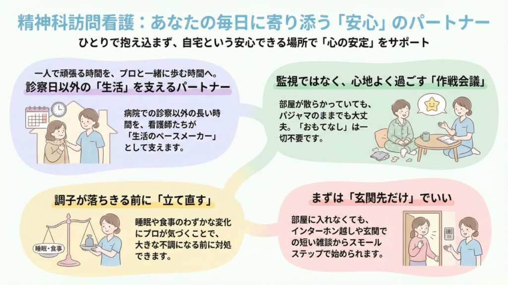 精神科訪問看護は、「監視」のためのものでも、「重症の人だけ」のものでもありません。